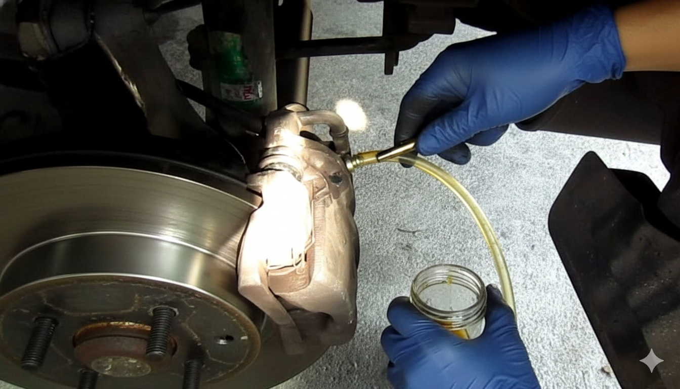 - คลายน็อตท่อกลางเล็กน้อยเพื่อไล่อากาศออก