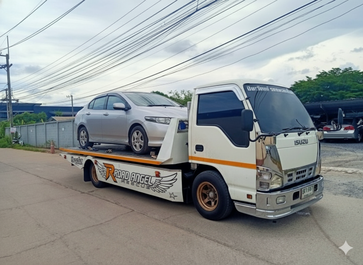 - รถยก: เหมาะกับรถที่เสียหายจนล้อไม่สามารถหมุนได้