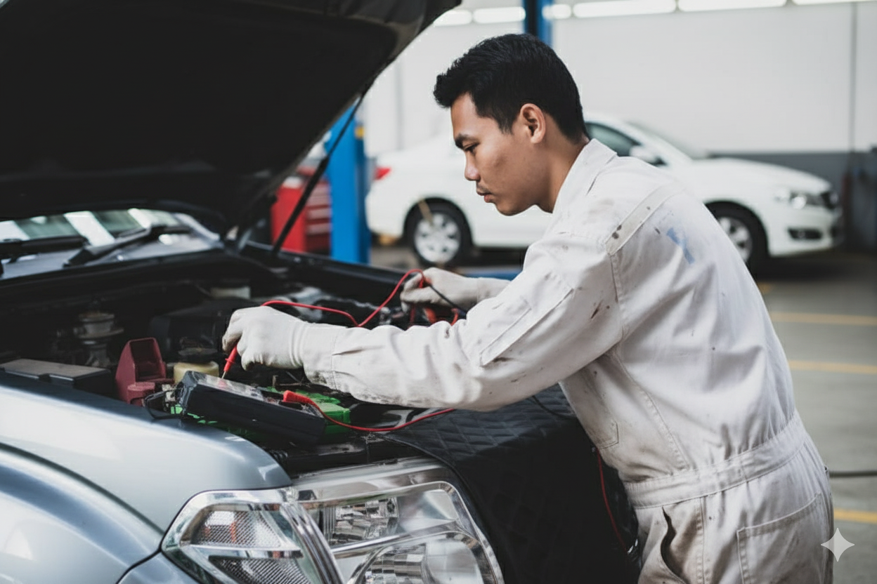 - ตรวจการทำงานของแบตเตอรี่และระบบชาร์จไฟ