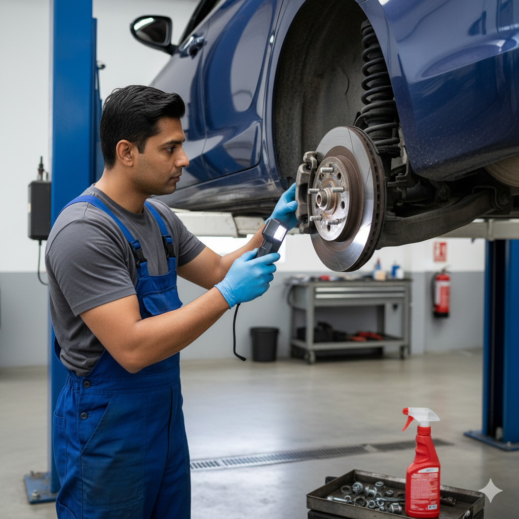 - ตรวจว่ามีเสียงดังหรือแรงสั่นเมื่อเหยียบเบรกหรือไม่