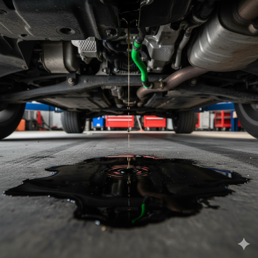 มักเป็น น้ำมันเครื่อง ที่รั่วจากซีลยาง ปะเก็น หรือชิ้นส่วนอื่น ๆ ที่เสื่อมสภาพ