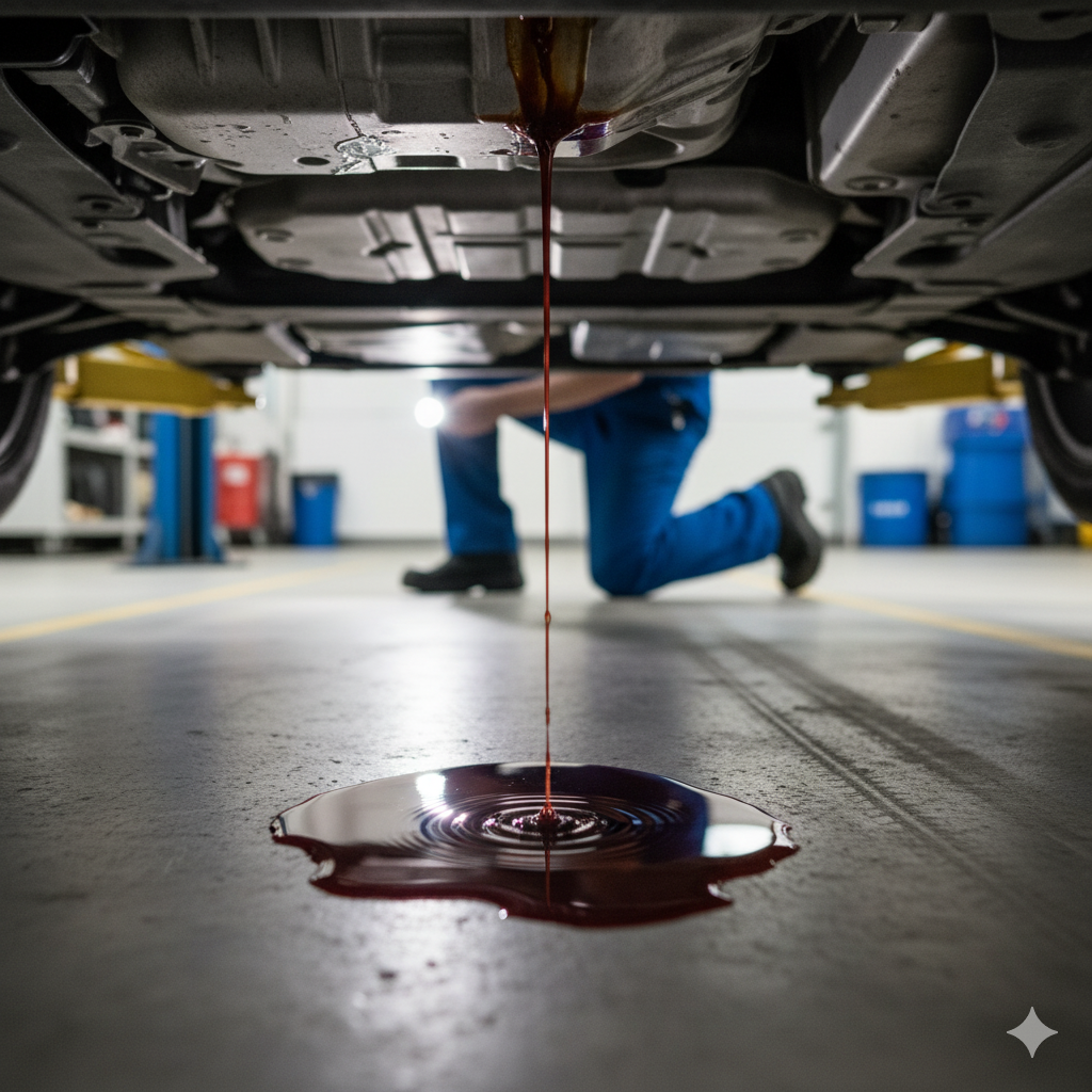 หากพบคราบลักษณะนี้ ควรตรวจเช็กระบบเกียร์และพวงมาลัยทันที เพราะอาจทำให้เกิดปัญหาการควบคุมหรือเปลี่ยนเกียร์ได้ไม่ราบรื่น