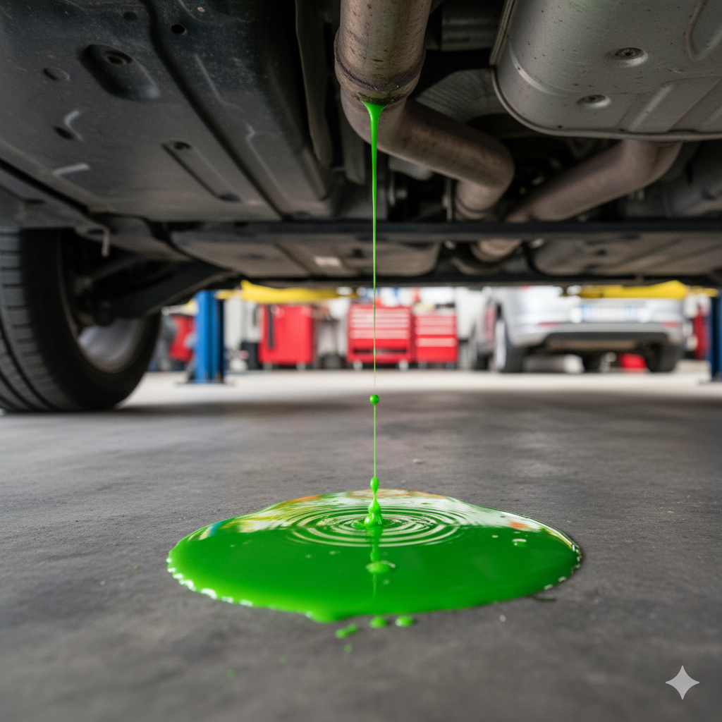 การรั่วซึมของน้ำยาหล่อเย็นอาจเกิดจาก ปั๊มน้ำ วาล์วน้ำ หรือหม้อน้ำรั่ว ซึ่งอาจทำให้เครื่องยนต์ร้อนจัดและพังเสียหายได้