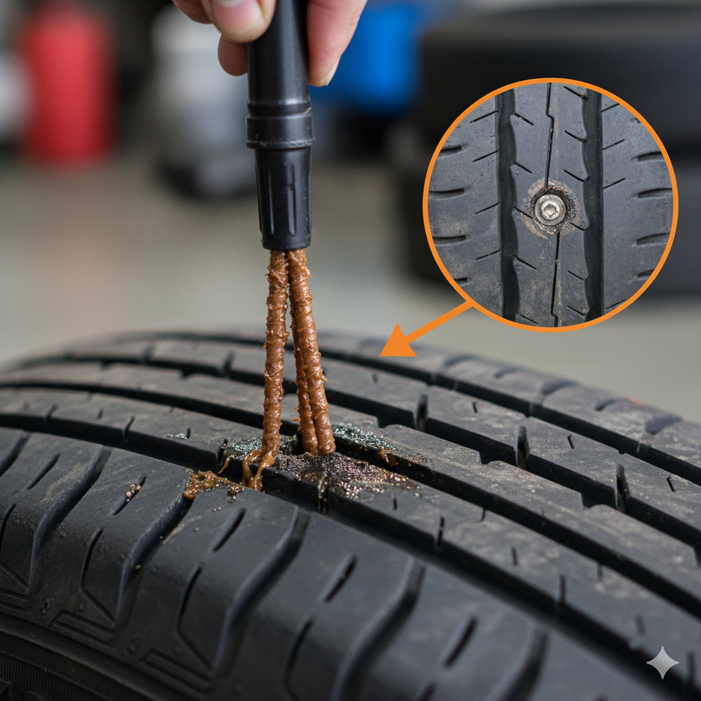 การปะยางแบบแทงไหมเหมาะสำหรับกรณีที่ยางรถยนต์มีรอยรั่วจากวัตถุแหลมคมขนาดเล็ก เช่น ตะปู วิธีนี้ทำได้ง่ายและราคาถูก แต่ยางอาจมีความทนทานต่อความร้อนได้น้อย และอาจจะมีการรั่วหรือซึมในบางครั้ง