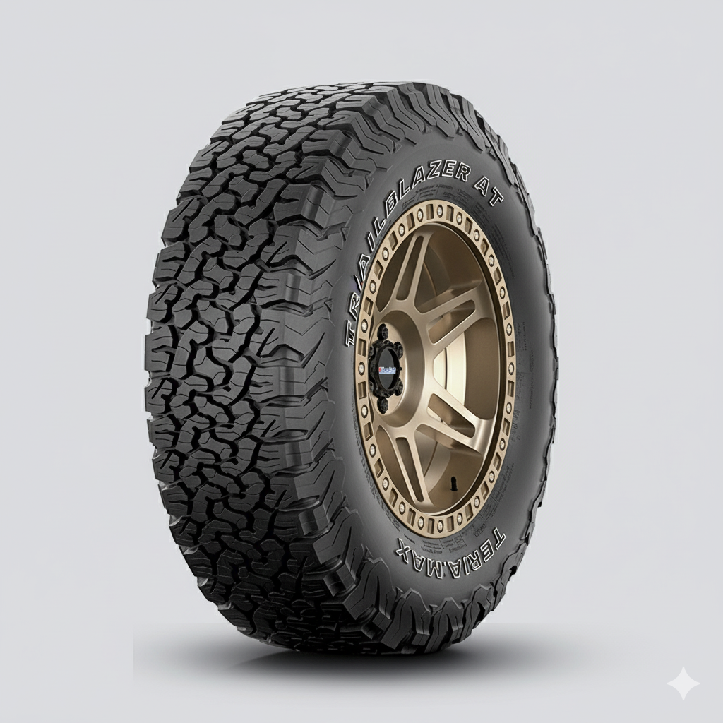 All Terrain หรือ A/T เป็นยางที่ออกแบบมาให้เหมาะกับการใช้งานทั้งในเมืองและในพื้นที่ที่มีเส้นทางขรุขระ เช่น ถนนดินหรือหิน ซึ่งยางประเภทนี้มีดอกยางที่ใหญ่และห่างกันเล็กน้อย ทำให้สามารถรับแรงกระแทกจากพื้นถนนที่ไม่เรียบได้ดี