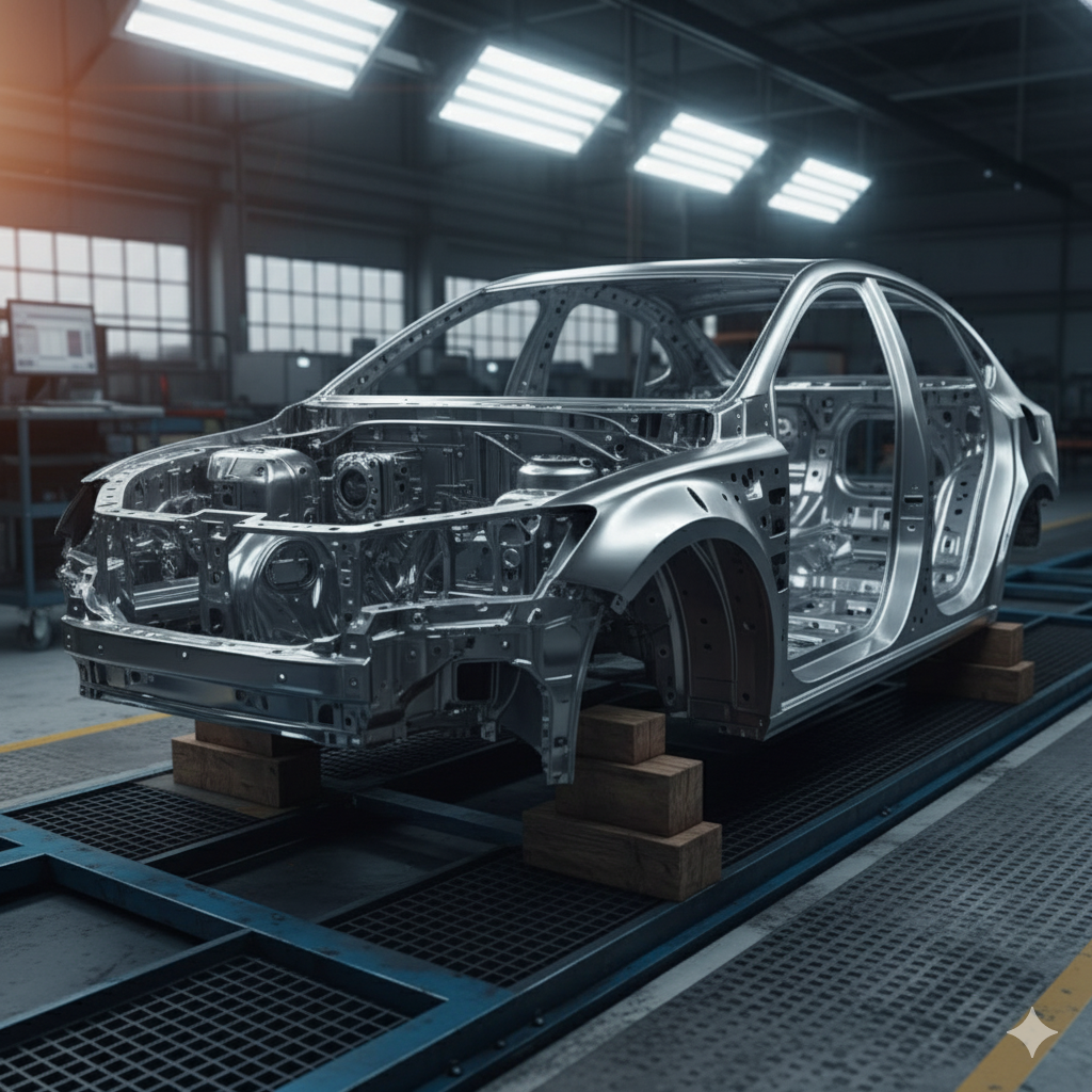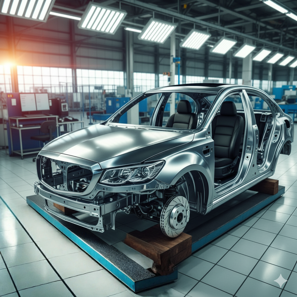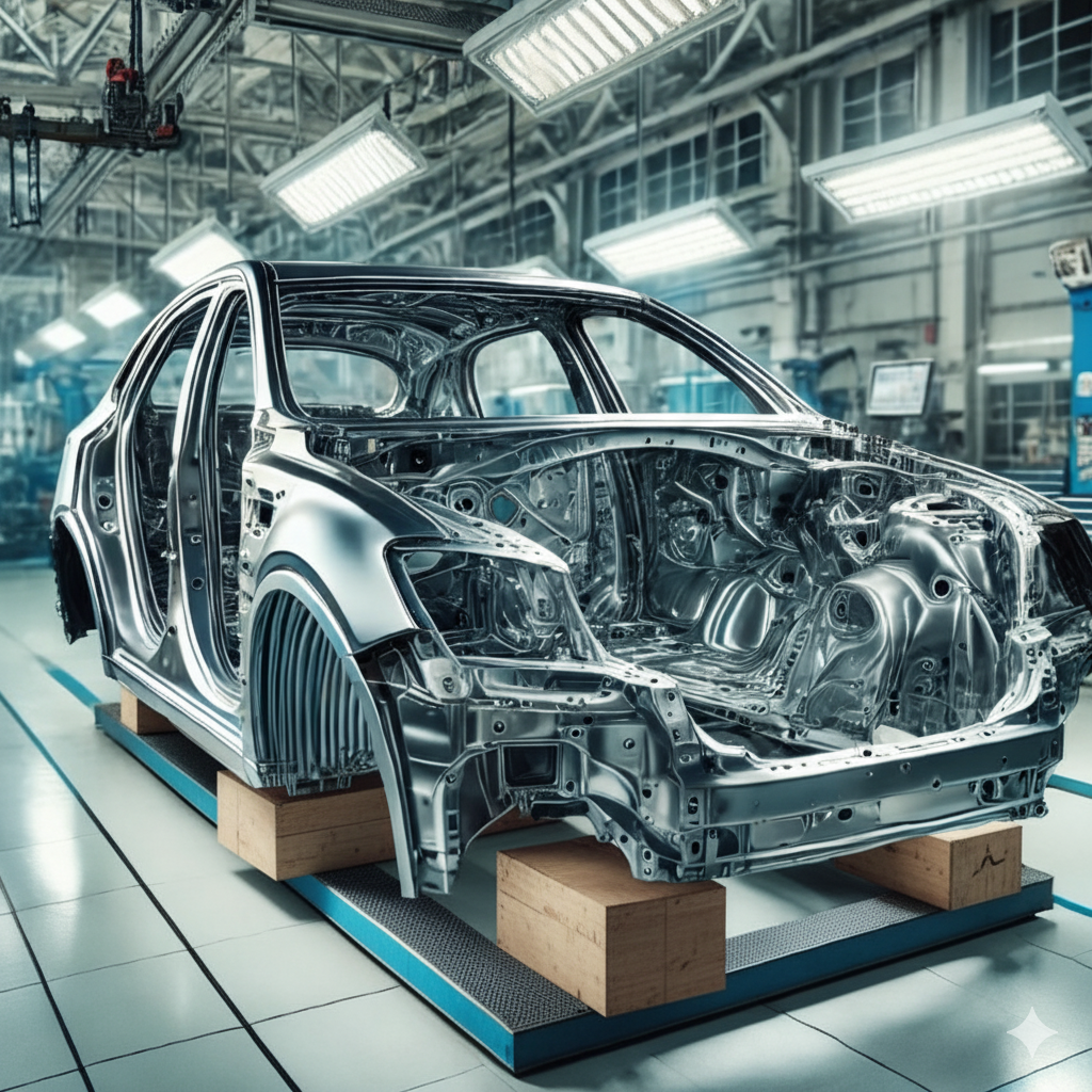 - อลูมิเนียม (Aluminum) อลูมิเนียมมีน้ำหนักเบากว่าเหล็กกล้า แต่ยังคงความแข็งแรงในระดับที่เหมาะสม อลูมิเนียมถูกนำมาใช้มากขึ้นในรถยนต์ที่ต้องการประหยัดพลังงานและเพิ่มประสิทธิภาพในการขับขี่ เช่น รถยนต์ไฟฟ้าและรถสปอร์ต