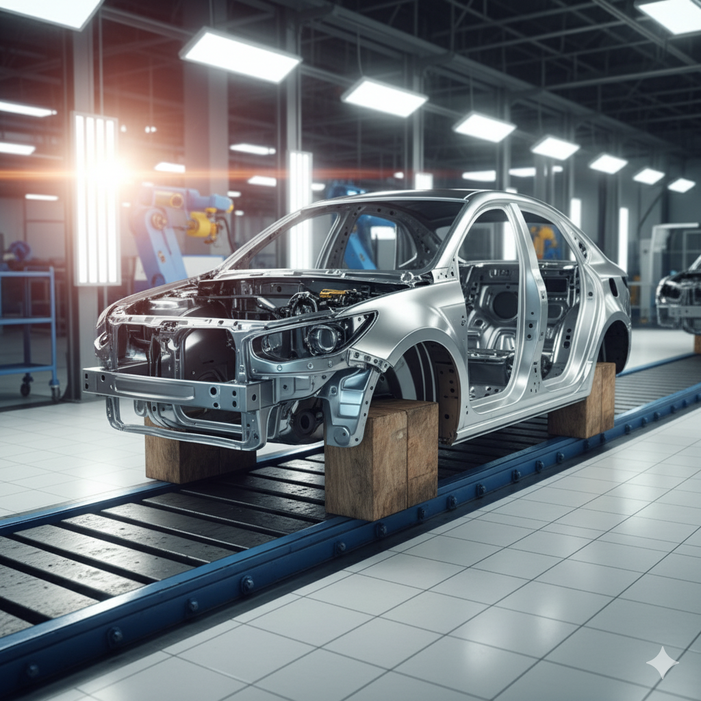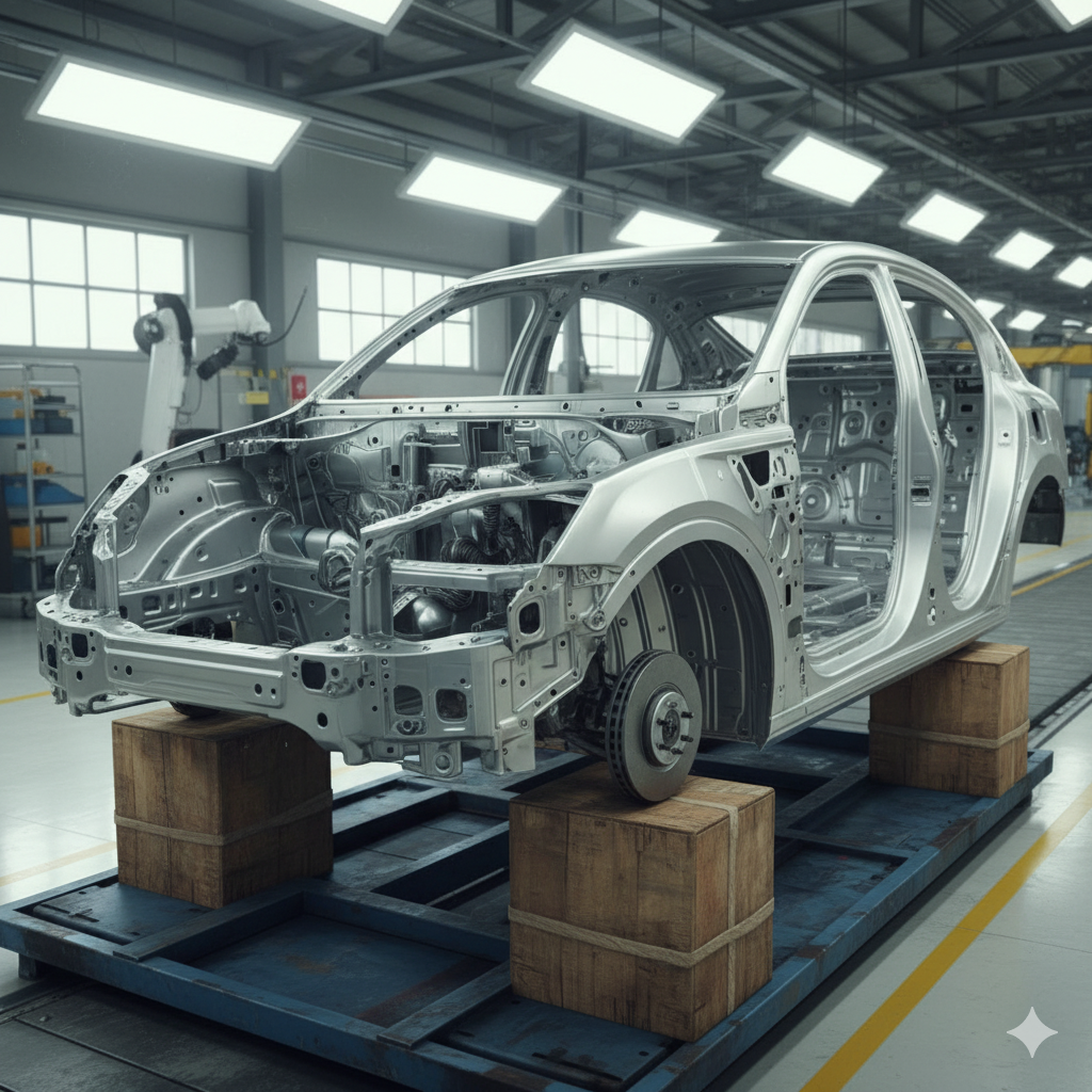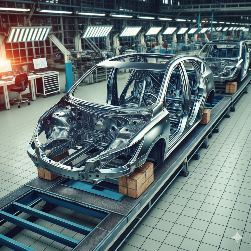 - อลูมิเนียม (Aluminum) อลูมิเนียมมีน้ำหนักเบากว่าเหล็กกล้า แต่ยังคงความแข็งแรงในระดับที่เหมาะสม อลูมิเนียมถูกนำมาใช้มากขึ้นในรถยนต์ที่ต้องการประหยัดพลังงานและเพิ่มประสิทธิภาพในการขับขี่ เช่น รถยนต์ไฟฟ้าและรถสปอร์ต