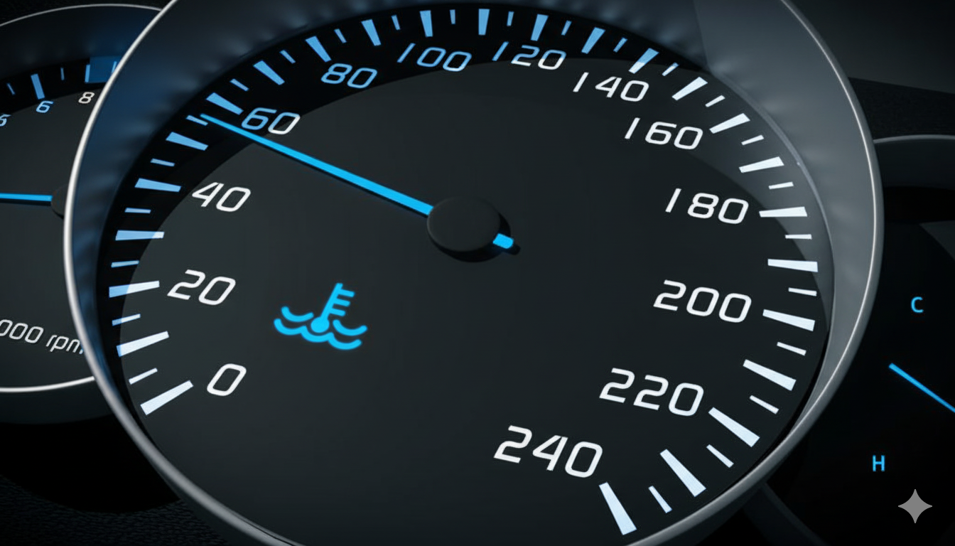 แสดงว่าเครื่องยนต์ร้อนเกินไป อาจมีน้ำหล่อเย็นต่ำหรือระบบหล่อเย็นผิดปกติ ควรหยุดรถ เปิดฝากระโปรง และปล่อยให้เครื่องเย็นก่อนตรวจสอบ