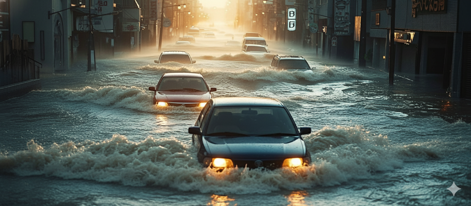 ระดับน้ำสูง 80 เซนติเมตร: ระดับน้ำที่อันตราย! สูงถึงฝากระโปรง เสี่ยงต่อน้ำเข้าห้องเครื่องยนต์ ควรงดขับทุกประเภทเนื่องจากมีโอกาสเกิดความเสียหายหนัก