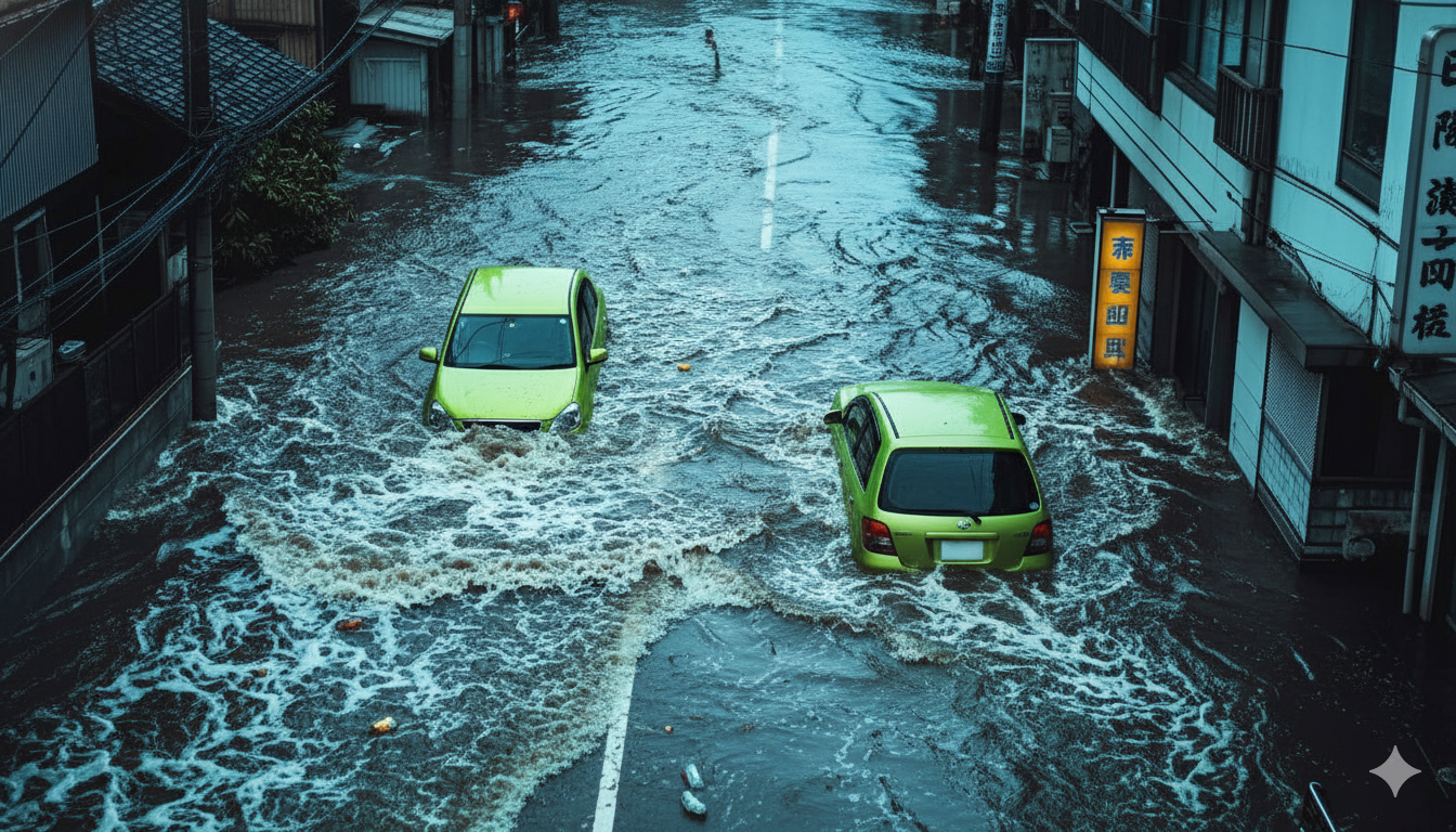 ระดับน้ำสูง 40 เซนติเมตร: น้ำอยู่เกินครึ่งล้อและอาจทำให้ท่อไอเสียจมน้ำ รถสูงเท่านั้นที่ควรเสี่ยง รถเล็กควรหลีกเลี่ยง ระดับนี้อาจมีน้ำซึมเข้าใต้พรม ควรนำพรมออกมาทำความสะอาดและตากให้แห้ง รวมถึงไล่ความชื้นจากรถ