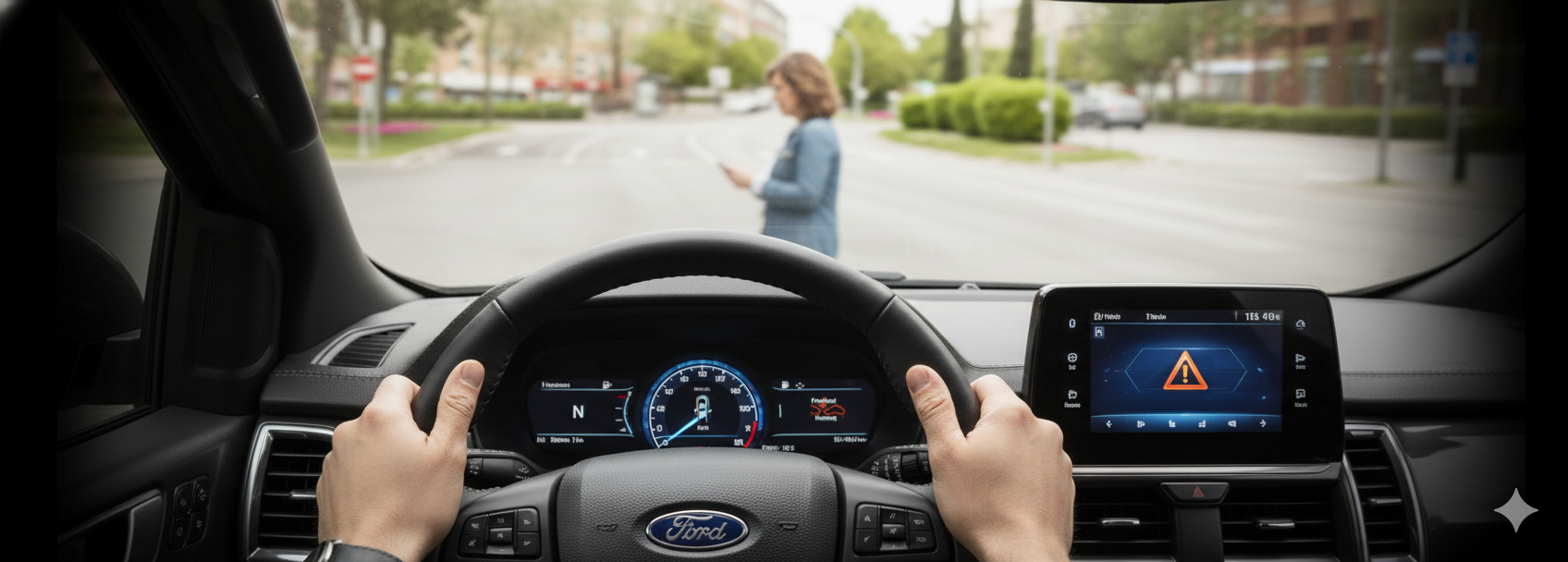 ฟอร์ดก็มีระบบเบรกฉุกเฉินเช่นกัน โดยเรียกว่า ระบบช่วยเบรกฉุกเฉินอัตโนมัติพร้อมระบบตรวจจับคนเดินถนน หรือ Autonomous Emergency Braking (AEB) with Collision Warning เหมือนภาษามาตรฐานทั่วไป