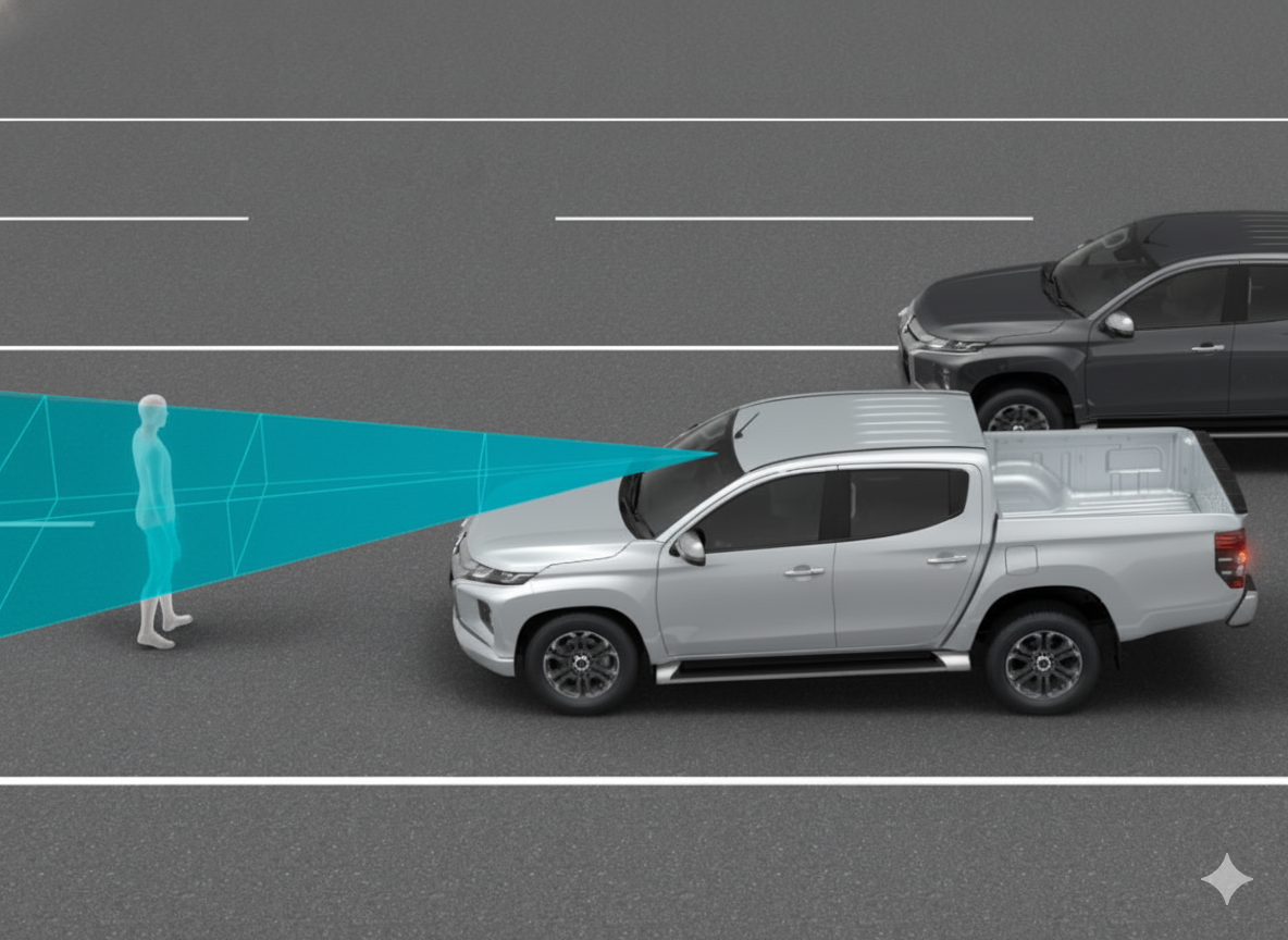 ระบบเบรกอัตโนมัติของมิตซูบิชิ ถูกเรียกว่า ระบบเตือนการชนด้านหน้าตรง พร้อมระบบช่วยชะลอความเร็ว หรือ Forward Collision Mitigation System (FCM)