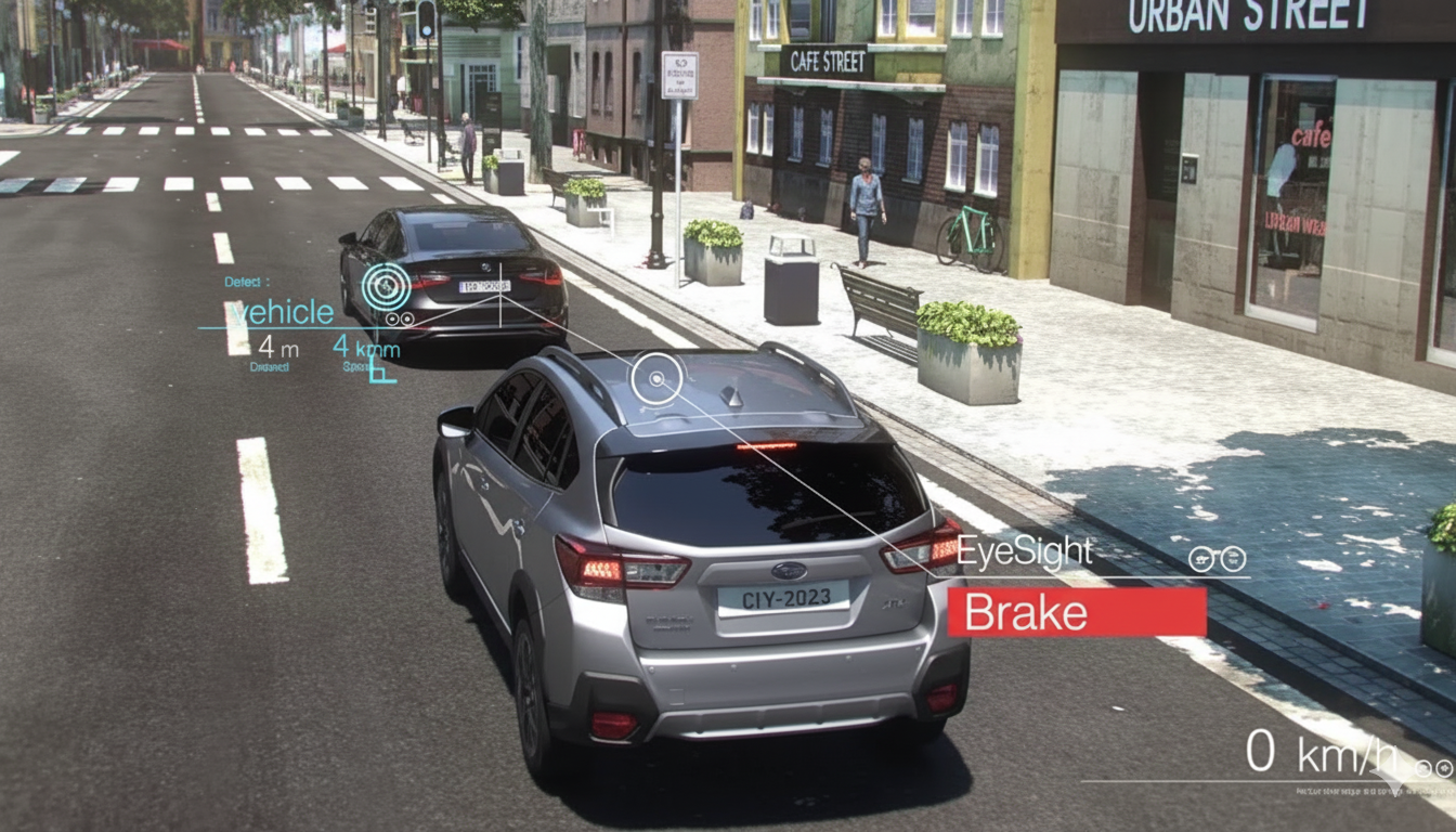 ของซูบารุนั้น จะมีระบบเบรกอัตโนมัติ รวมอยู่ในระบบใหญ่ที่เรียกว่า Subaru Eye-Sight ที่จะรวมเอาระบบความปลอดภัยเอาไว้หลายอย่าง และจะมี Pre-Collision Braking เรียกเป็นภาษาไทยว่า ระบบการเบรกก่อนชน