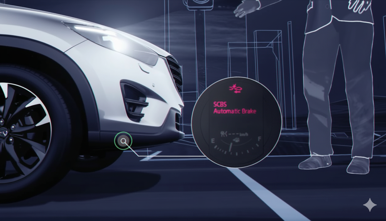 ของมาสด้านั้น ระบบความปลอดภัยจะถูกเรียกว่า Mazda i-Active Sense และ 1 ในนั้นก็มีระบบช่วยหยุดรถอัตโนมัติ หรือ Smart City Brake Support (SCBS) เป็นระบบความปลอดภัยก่อนการชน
