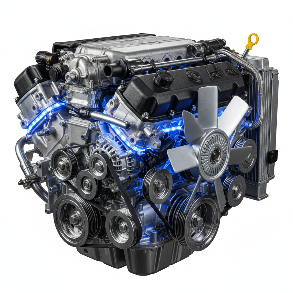 - เครื่องยนต์ (หรือมอเตอร์ไฟฟ้าในกรณีของรถไฟฟ้า): เป็นแหล่งพลังงานหลักที่ขับเคลื่อนรถยนต์