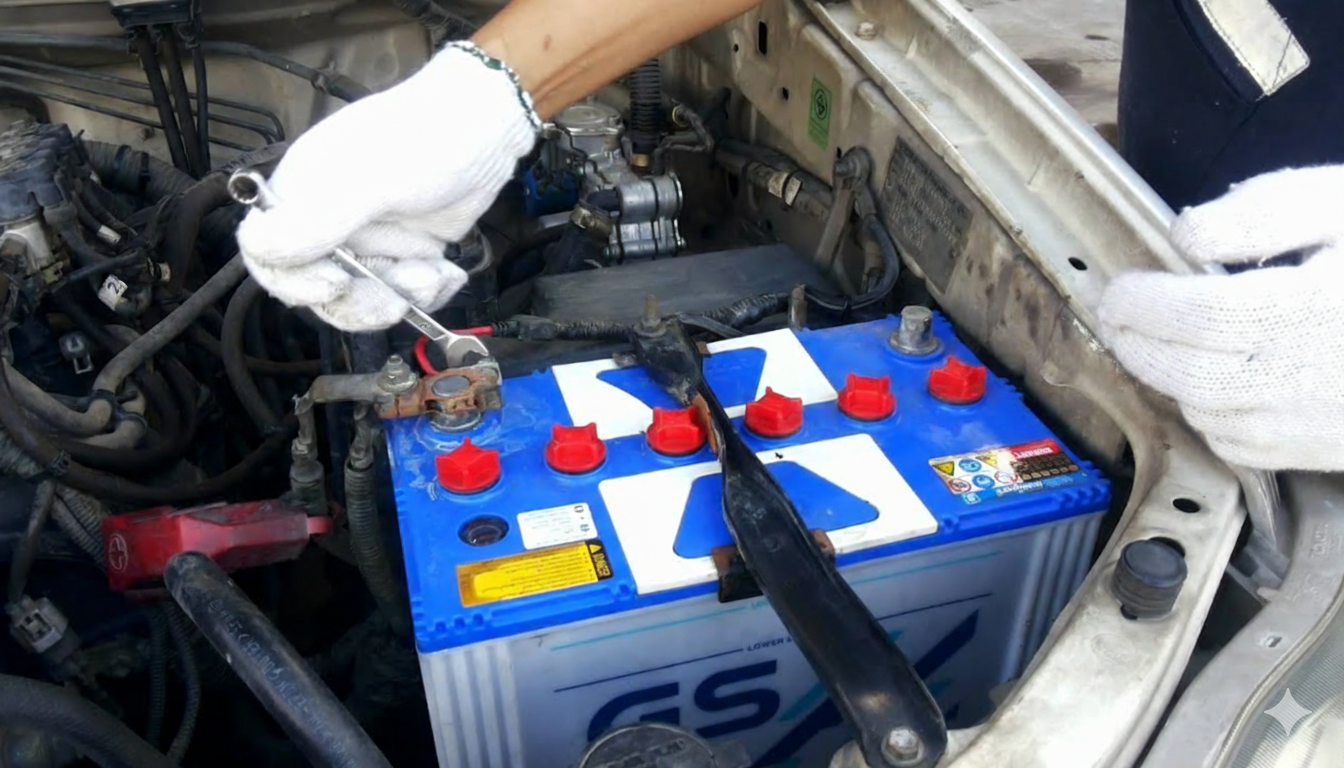 ก่อนทำการถอดขั้วแบตเตอรี่, ควรดับเครื่องยนต์ให้เรียบร้อยเพื่อความปลอดภัยในการทำงานและลดความเสี่ยงในการเกิดไฟฟ้าลัดวงจร